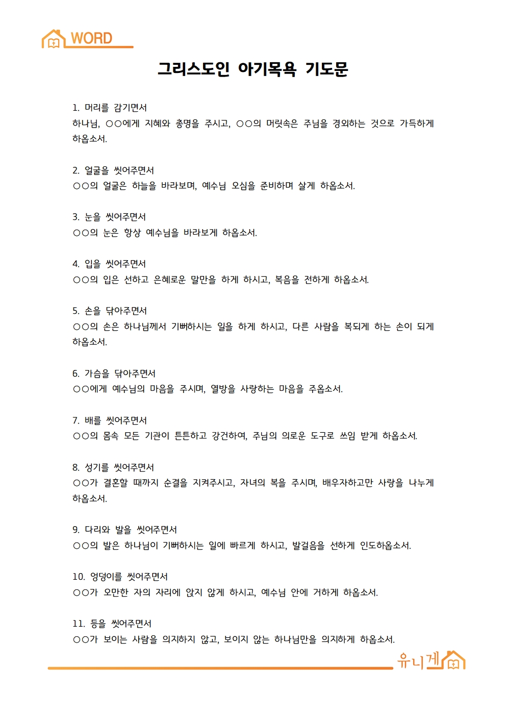 그리스도인 아기목욕 기도문001